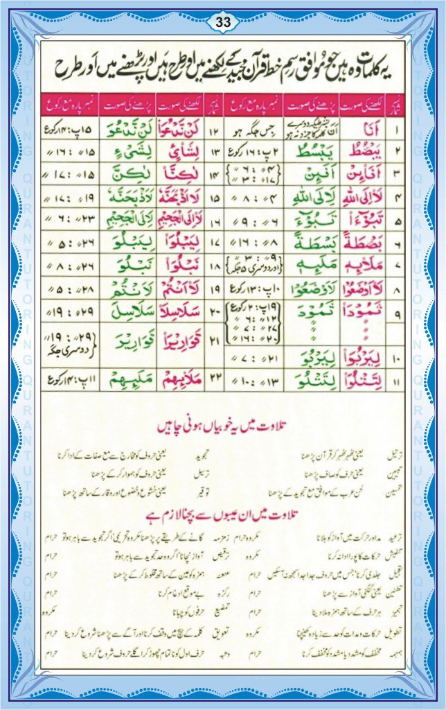 • Correct pronunciation of Arabic letters from their proper origin (Makhraj).